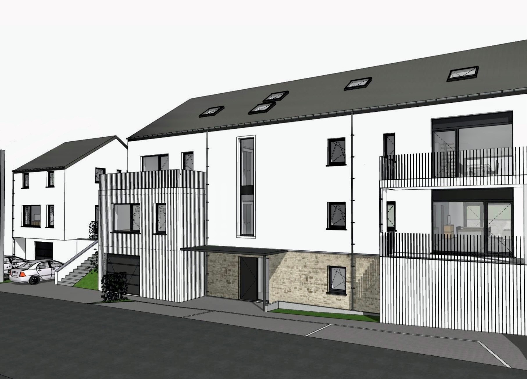 Le présent projet consiste en la construction d’un immeuble de 7 appartements répartis sur 2 étages et d’une maison.
