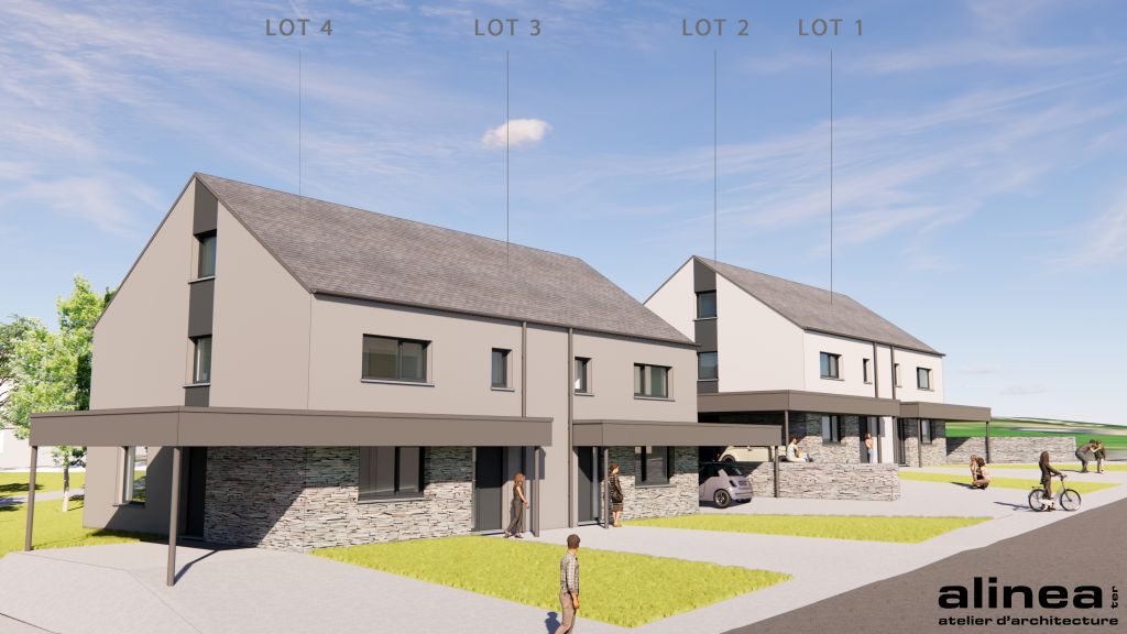 4 maisons unifamiliales spacieuses comprenant entre autres un car-port, 3 chambres, une belle terrasse et un jardin. De plus, le volume sous toiture peut également être aménagé en pièces de vie supplémentaire pour utiliser les 3 étages.
